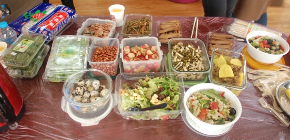 支部党员利用周末时间,在家里准备了自己的拿手菜,周一中午带到工会活动室,大家一起午餐,并交流工作和生活中遇到的问题和解决办法。