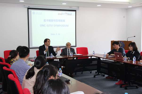 5月11日上午,北卡罗来纳大学教堂山分校Eshelman漫蛙漫画 代表团一行来访交大漫蛙漫画 。此次来访的有负责经济发展和国际合作的副院长Dhiren R.Thakker教授和分管全球事务的副院长Stephen F. Eckel教授等。