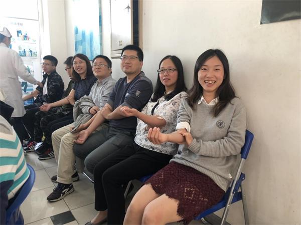 学院高度重视献血活动,从积极宣传、广泛动员到认真组织,党员同志们热情高涨,教工第一党支部五名同志参与本次献血,院党委书记刘建新的带领支部其余党员为献血的同志提供了后勤保障服务。当天中午,党员同志们早早的来到光彪楼,在现场医护人员及志愿者的协助下,依次完成了血液采集,由于教工一支部的老师大多是行政岗位,稍作休息之后,他们又立刻返回到服务师生的工作岗位上。