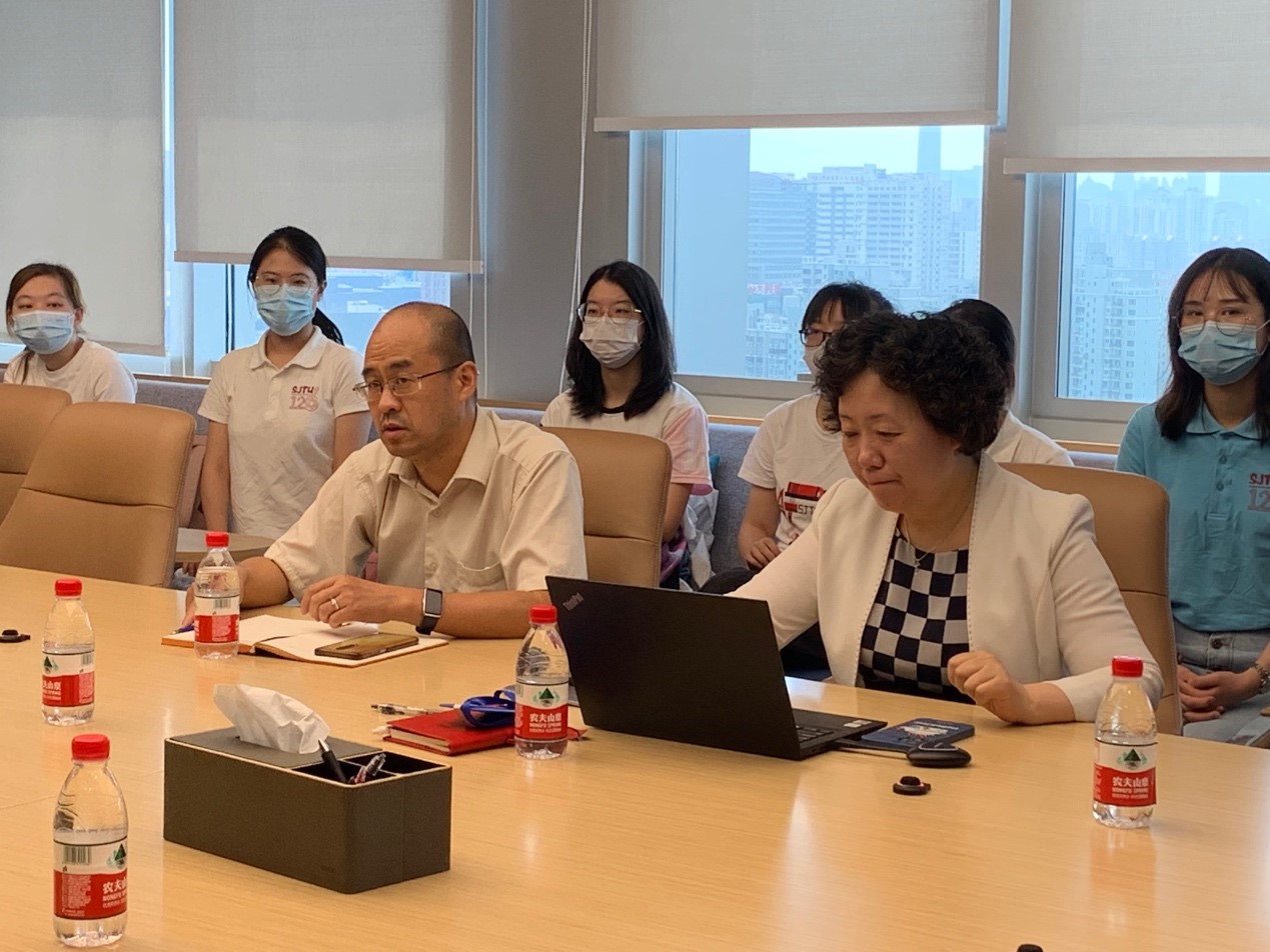 参观结束后,实践团与企业代表进行了近一步的交流,韩晓慧首先对交大漫蛙漫画 的老师和同学表示了热烈的欢迎,而后提到自己和傅惟惟都是交大的校友,看到学弟学妹们倍感激动与亲切。高杏就交大漫蛙漫画 的发展现状、毕业就业等基本情况进行了精炼的介绍,韩晓慧也为同学们讲解了公司进出口贸易的运作模式和工作内容,双方在交流中不断增进了友谊与认识。