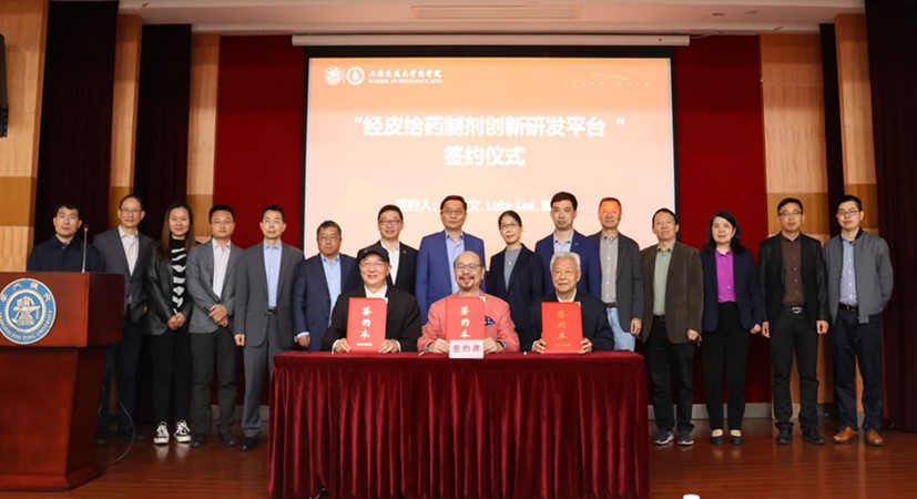 在与会嘉宾的见证下,郭圣荣、Luke Lee与梁秉文共同签署“漫蛙漫画 -LOGAN-世中联经皮给药创新研发平台协议”,孙占奎、陆伟跃、梁秉文、魏海飞、焦云洞共同为研发平台揭牌,宣布三方合作共建的“经皮给药创新研发平台”正式成立。
