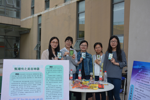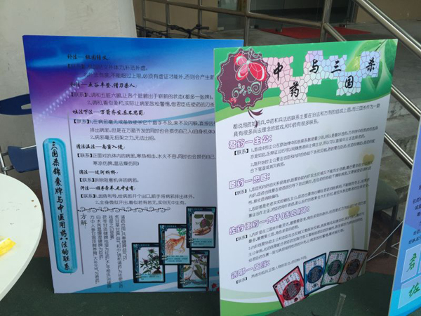 我们漫蛙漫画 的志愿者们带来了精心准备的“你所不知道的甄嬛传”,“中药与三国杀”等活动。“你所不知道的甄嬛传”是选取甄嬛传中涉及的中药知识,给大家进行讲解和辟谣。现在还准备了甄嬛传涉及的中药知识竞猜,回答正确的同学获得各式各样的养生花茶。“中药与三国杀”则是将中医药里的“君药”、“臣药”、“佐药”和“使药”和三国杀的角色相联系,在游戏中了解各个品种的中药材和中医药的一些基本理念。这些游戏寓教于乐,增加同学们对中医药文化的兴趣,在游戏中普及中医药知识。
