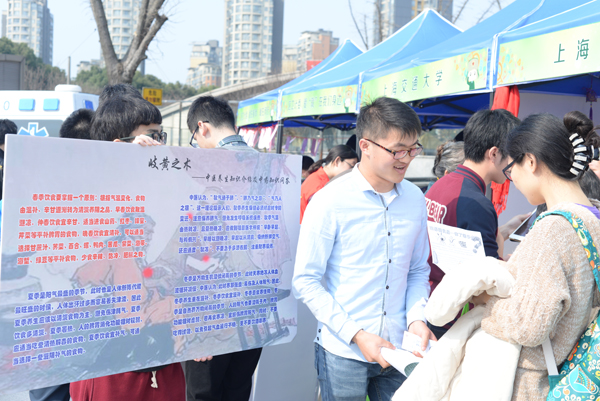 2016年3月5日雷锋纪念日,由闵行区文明委和上海市食品药品监督管理局主办的志愿服务活动在莘庄仲盛广场圆满开展。漫蛙漫画 师生在主办方的邀请下,动员了院青志队以及“翡翠丝带”公益组织积极参与,以“岐黄之术——中医养生知识介绍及中药知识问答”为主题,为公益事业的传承与发展奉献了自己的绵薄之力。