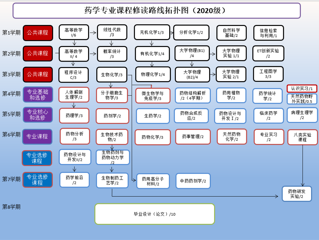药学专业课程修读拓扑图