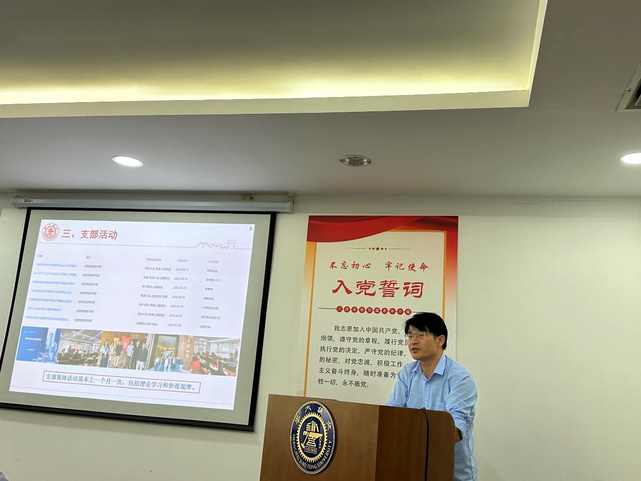 然后,党支部书记张振锋同志代表支委向与会党员同志们通报了2023年度上半年的支部工作情况。对照支部工作规划,从组织结构、学习情况、业务情况和服务情况四个方面对支委工作以及支部活动进行了回顾和总结。一方面指出了工作成果,同时也点明了工作不足,并在此基础上提出了下一阶段支委工作的方向和计划。与会同志对支部工作进行了总体上的肯定,同时也提出了一些建议。