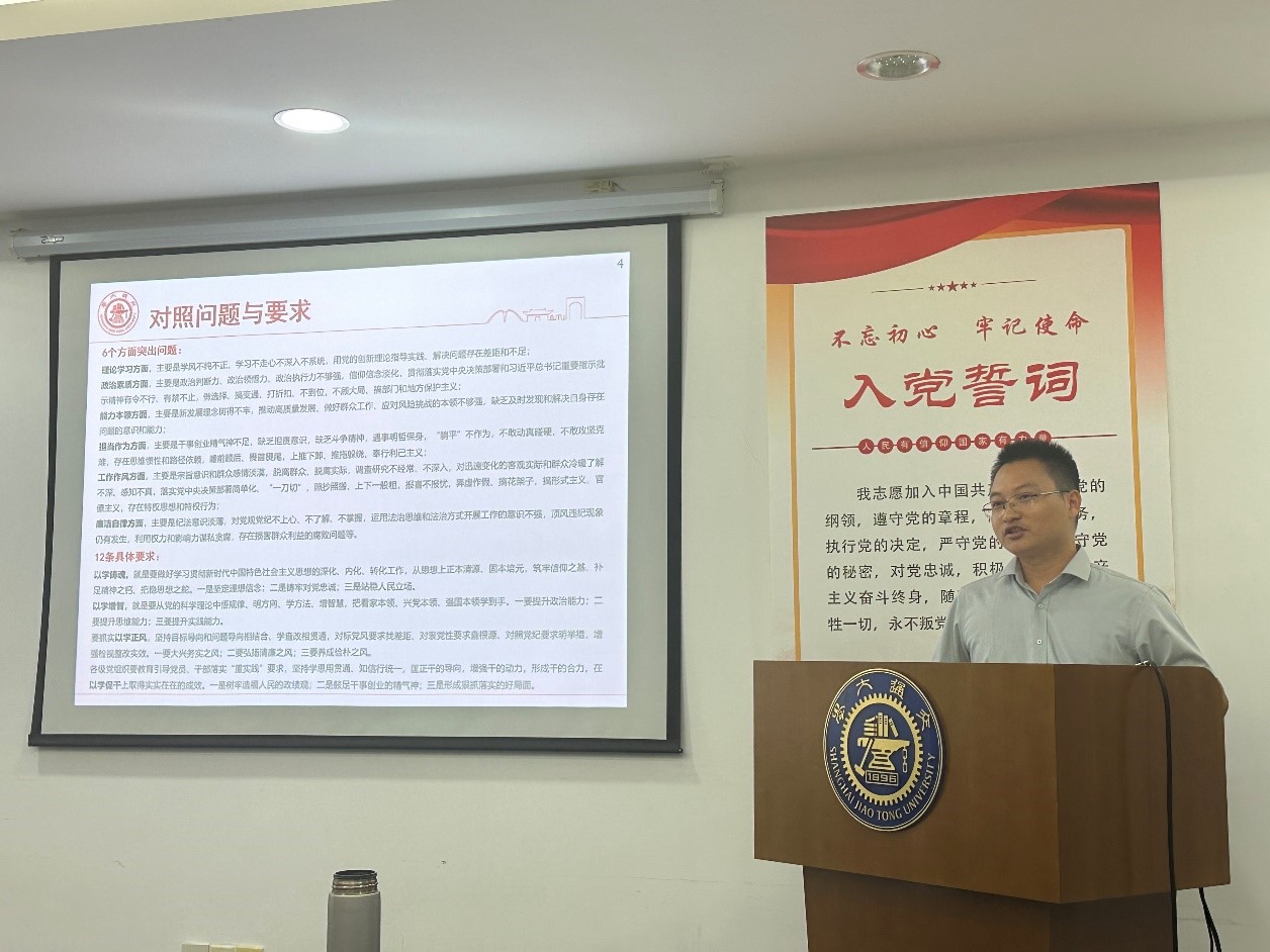 接着,由支委同志带头,每位党员对照《中共中央关于在全党深入开展学习贯彻习近平新时代中国特色社会主义思想主题教育的意见》明确的理论学习、政治素质、能力本领、担当作为、工作作风、廉洁自律等6个方面突出问题,特别是对照习近平总书记关于以学铸魂、以学增智、以学正风、以学促干的12条具体要求,紧密结合自身政治思想、学习情况、教学科研、学生培养及管理工作进行了问题查摆和原因分析,逐一开展批评和自我批评,并提出了相应的改进措施,对今后的学习、工作以及生活提出了更高要求。