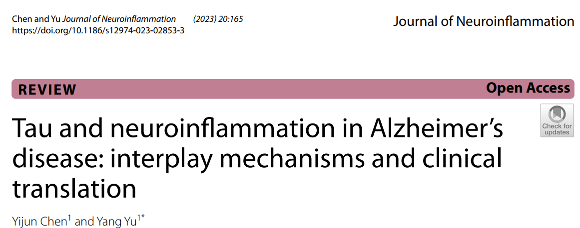 于洋团队在神经免疫知名期刊《Journal of Neuroinflammation》(中科院一区,Top期刊)上发表了题为“Tau and neuroinflammation in Alzheimer’s disease: interplay mechanisms and clinical translation”的综述文章,论述了tau蛋白与神经炎症的相互作用对AD疾病进程的影响,并系统阐述了当前以tau蛋白和神经炎症为靶标的AD新药研发进展,强调了两者在AD新药研发中的潜在临床价值。
