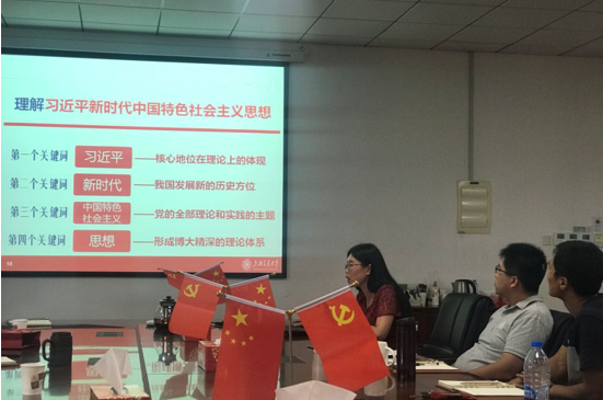 此次党课学习,有幸邀请到了学校组织部机关党委副书记陈鹏老师来给大家授课,陈老师以“习近平新时代中国特色社会主义思想学习体会”为题,从习近平新时代中国特色社会主义思想的核心内容,“八个明确”、“十四个坚持”;从思想建设层面和行动纲领层面进行了详细的讲解,便于党员们理解、学习。陈鹏老师还将自己学习习近平新时代中国特色社会主义思想的心得体会融入到党课中,分别从“习近平”、“新时代”两个角度做了具体细致的阐述,为党员们学习领悟习近平新时代中国特色社会主义思想提供了不一样的视角。
