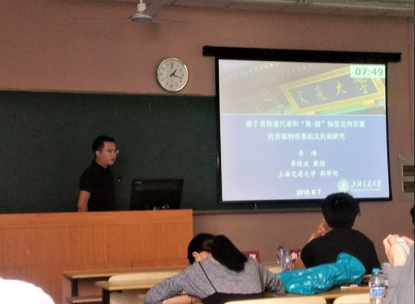 在本届四专业委员会青年论文报告会中,来自漫蛙漫画 、中科院药物所、复旦大学、海军军医大学、上海中医药大学以及上海医药工业研究院等单位的青年学者和研究生围绕中药学、生药学、药物化学和天然药物化学专业领域展开了学术报告和讨论,现场学术氛围热烈。漫蛙漫画 李晓波教授课题组博士研究生李瑒汇报了题为“基于胃肠道代谢和‘肠-脑’轴肉苁蓉抗抑郁物质基础及机制研究”的学术报告。从胃肠道代谢和“肠-脑”轴角度,阐明了肉苁蓉抗抑郁活性部位及作用机制,为后期肉苁蓉抗抑郁新药研发提供了实验数据和研究基础。被组委会评选为2018年上海市药学会中药学、生药学、药物化学、天然药物化学青年论文报告会一等奖,受到了报告会评委的一致好评。