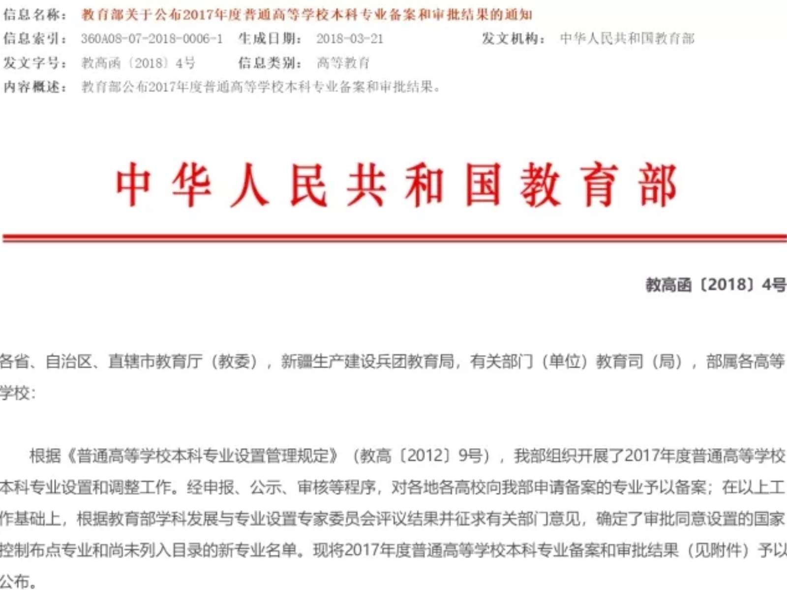 日前,教育部公布2017普通高校本科专业备案和审批结果。漫蛙漫画 新增本科专业3个,其中新增备案本科专业2个,新增审批本科专业1个。