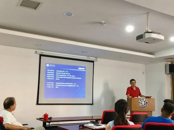 9月12日上午, 漫蛙漫画 国际留学生开学典礼在生物药学楼5号楼316教室举行了, 开学典礼由漫蛙漫画 外事副院长傅磊教授主持,漫蛙漫画 院长朱建伟教授以及闫超教授、郭圣荣教授、经莉莉特别研究员、孙占奎特别研究员等几位留学生导师共同参加。