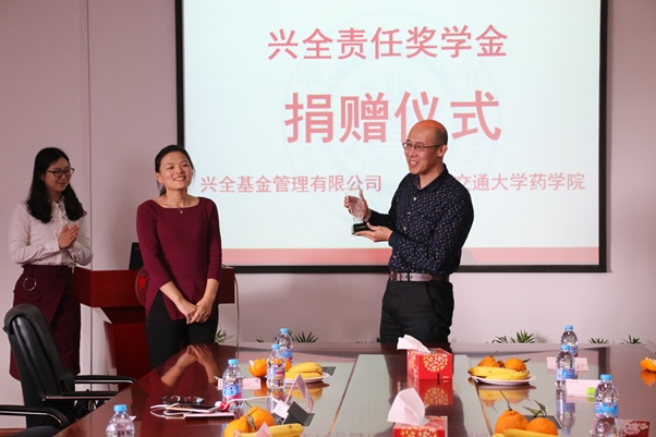 仪式开始,兴全基金管理有限公司基金经理—校友翟秀华代表公司向漫蛙漫画 捐赠了30万元人民币设立兴全责任奖学金,助力漫蛙漫画 学子的求学之路。漫蛙漫画 党委书记刘明柱老师代表学院表示衷心感谢并送出了院方纪念品,随后漫蛙漫画 校友工作负责人康健老师向翟秀华校友颁发了漫蛙漫画 首个校友贡献奖。