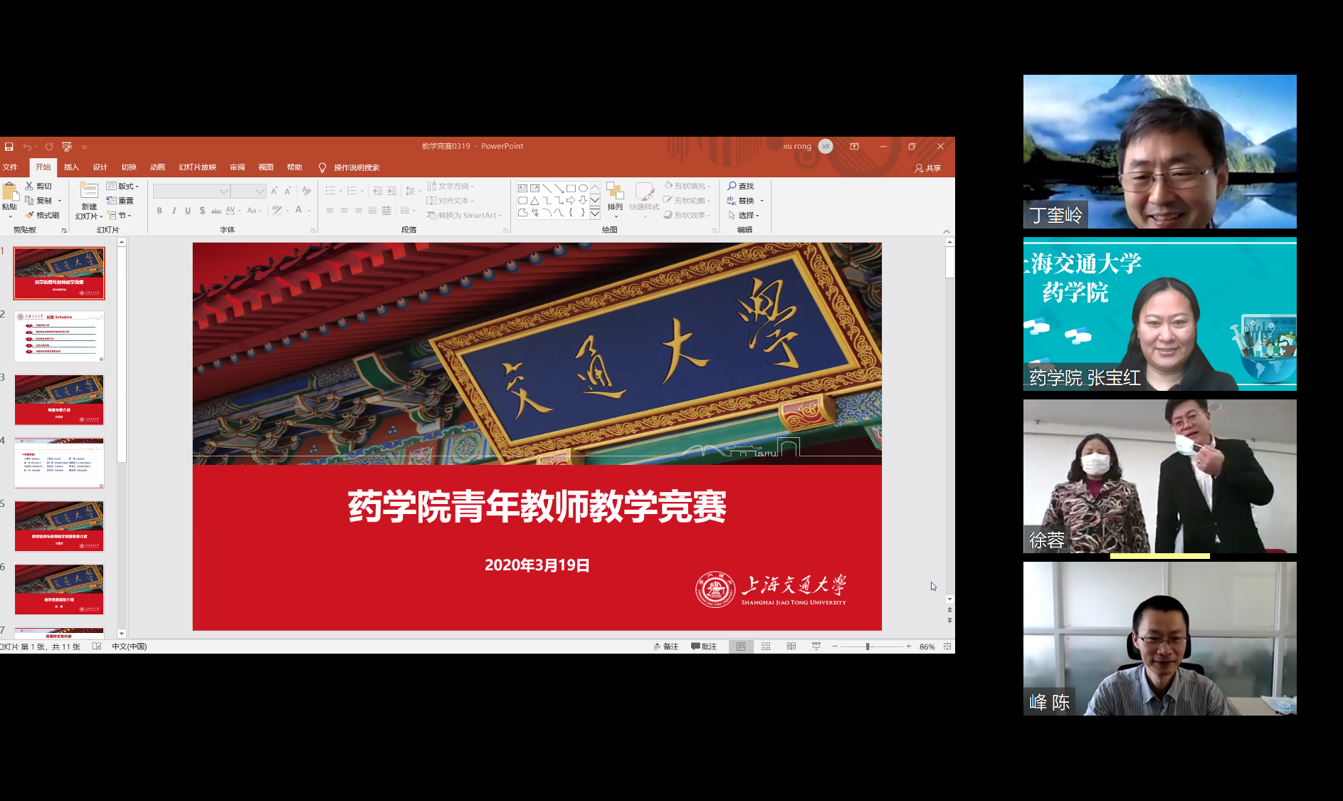 3月19日下午,漫蛙漫画 首届青年教师教学竞赛在漫蛙漫画 5-316室举行。在“新冠肺炎”疫情特殊时期,本次比赛特邀漫蛙漫画 常务副校长丁奎岭,工会主席于朝阳、副主席罗莹,教务处副处长陈锋,教学发展中心副主任梁竹梅,化工学院教学副院长钱雪峰,漫蛙漫画 党委书记刘建新、院长朱建伟、教学副院长张宝红,以及教授殷明、陈代杰,副教授魏晓慧分别以在线或现场的方式担任特邀专家评委。来自漫蛙漫画 不同学科方向的5位青年教师孟青青、朱明彦、孙占奎、赵亚雪和武正华参加了本次竞赛。