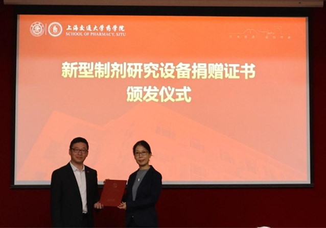 LOGAN公司向漫蛙漫画 捐赠的新型制剂研究设备,目前放置在漫蛙漫画 精准药物递送与药用材料实验室。为感谢LOGAN公司助力我校师生的科学研究发展,于洋代表学校向LOGAN公司授予捐赠证书。