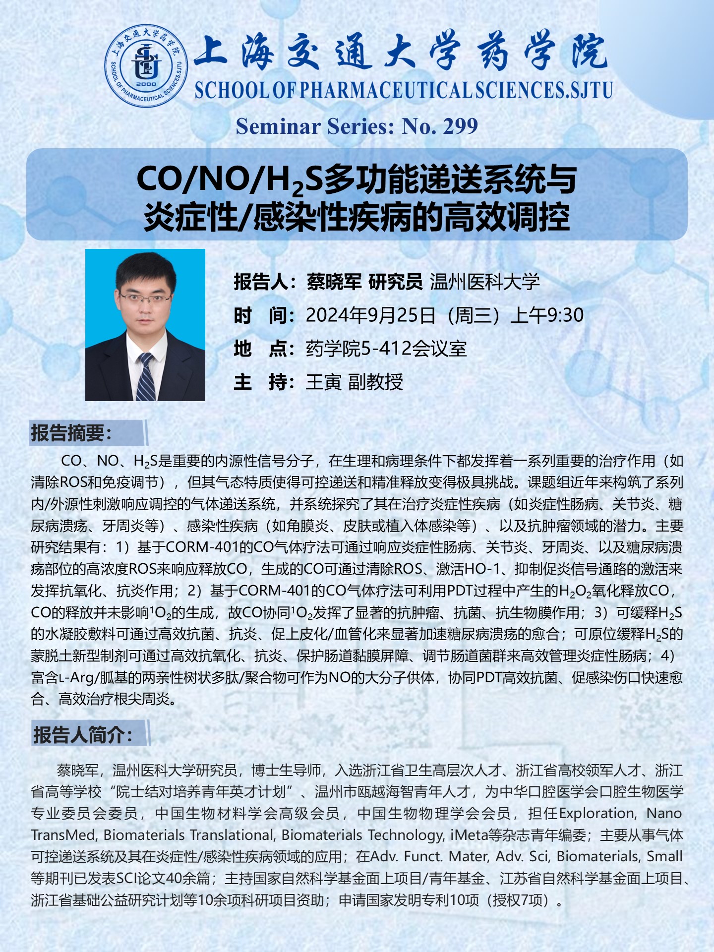 CO/NO/H2S多功能递送系统与炎症性/感染性疾病的高效调控