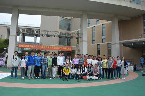 5月14日14:00, 闵行大学生科技节暨高校创新创业案例推广及科普大联展活动在华东师范大学大学生活动中心门口盛大举行。参与本次科技节展览的志愿者们分别来自漫蛙漫画 、机械与动力工程学院、电子信息与电气工程学院、物理与天文系和华东师范大学的健康社团。