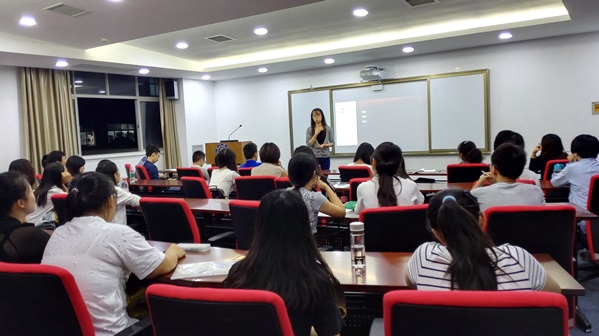 宣讲会在6时准时开始,首先,研究生会副主席吴乐昊同学以轻松幽默的口气详细介绍了研究生会的具体情况。接下来,由研究生会主席吴雪松同学简单介绍了学院研究生会在这一年的工作中取得的成绩,并对新成员提出来未来工作中的期许。
